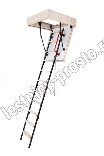 Складная 4-х секционная чердачная лестница. Ступени выполнены из сосны, имеют противоскользящие насечки, направляющие из металла.