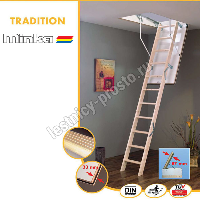 Возможна установка лестницы в разных по высоте помещениях, в пределах от 220 до 280 см.