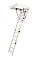 Лестница складная четырехсекционная, изготовлена из массива сосны. Термоизоляционная крышка типа "сэндвич" утеплена пенопластом толщиной 20 мм, облицована с двух сторон ДСП белого цвета.