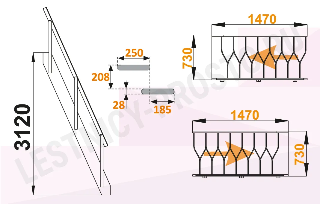 Высота лестницы 2912 - 3120 мм