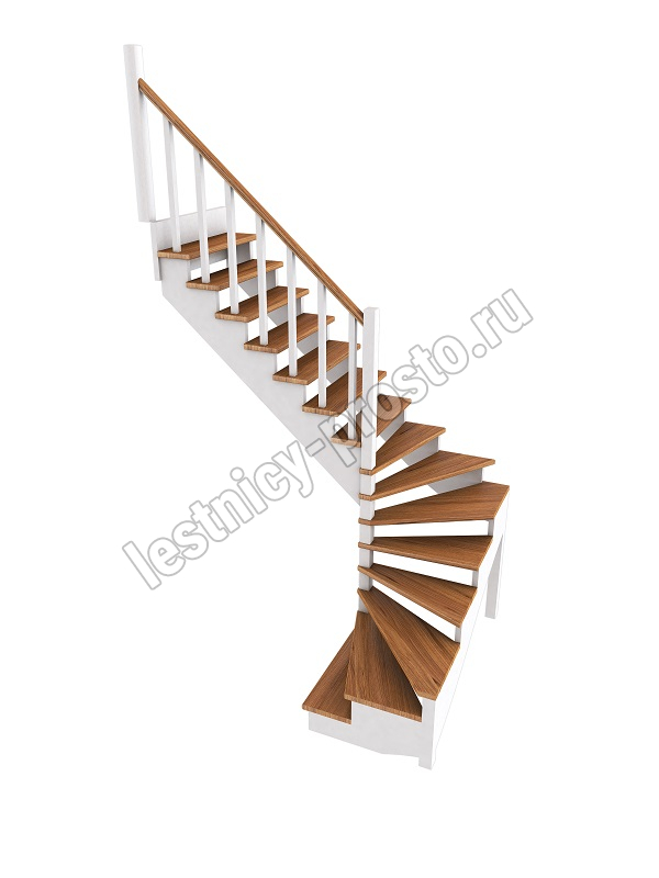 Ступени и поручень лестницы изготовлены из сращенного бука; тетивы, столбы, балясины - из сосны. Возможно изготовление данной модели полностью из бука. Базовый комплект включает в себя деревянные элементы лестницы и ограждения без какого-либо покрытия.
