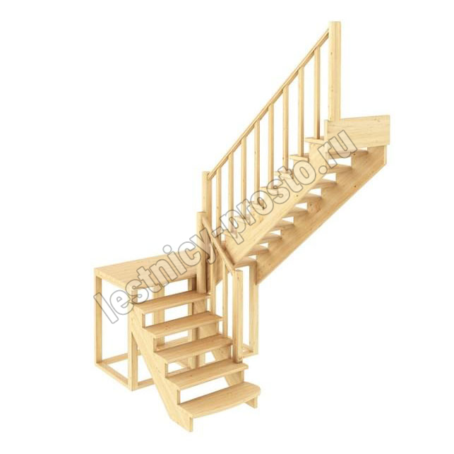 Материал: бук (ступени и поручень), сосна (косоуры, столбы, балясины)