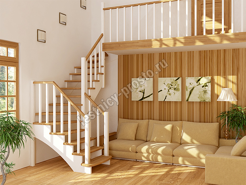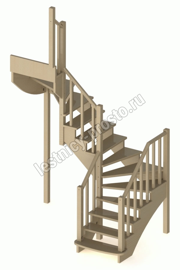 Ступени и поручень лестницы выполнены из бука, остальные элементы из сосны. Возможно изготовление данной модели полностью из бука.