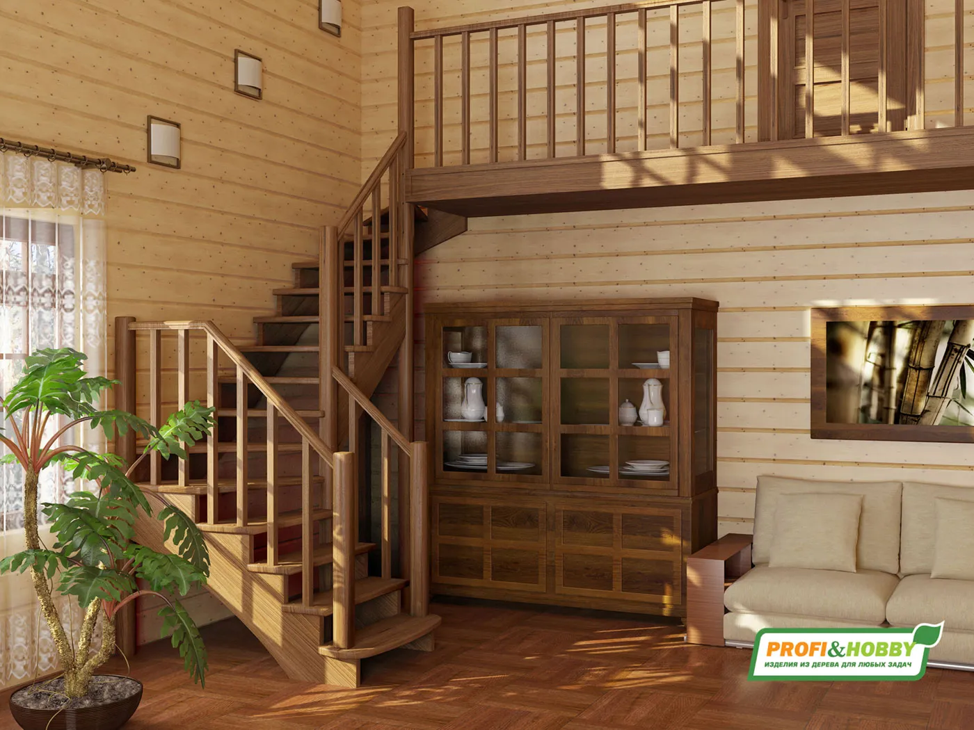 Ступени и поручень лестницы выполнены из дуба, остальные элементы из сосны. Возможно изготовление данной модели полностью из дуба.