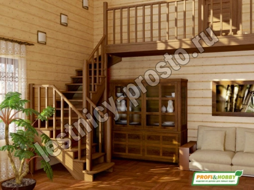Ступени и поручень лестницы выполнены из дуба, остальные элементы из сосны.