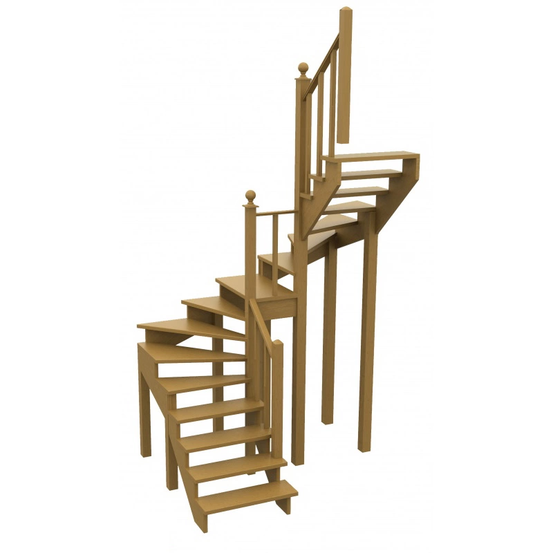 Базовый комплект включает в себя деревянные элементы лестницы и ограждения без какого-либо покрытия.