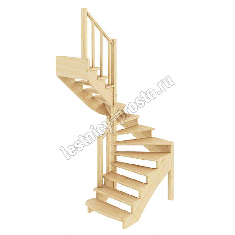 Базовый комплект включает в себя деревянные элементы лестницы с подступёнками и ограждения без какого-либо покрытия.