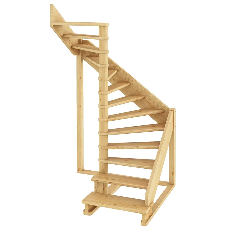 Базовый комплект включает в себя деревянные элементы лестницы и ограждения без какого-либо покрытия.
