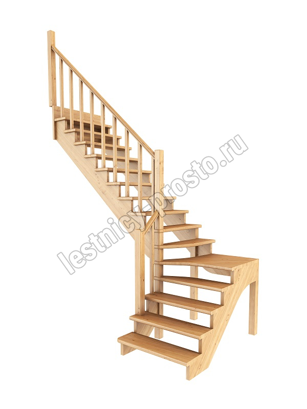 Базовый комплект включает в себя деревянные элементы лестницы и ограждения без какого-либо покрытия.