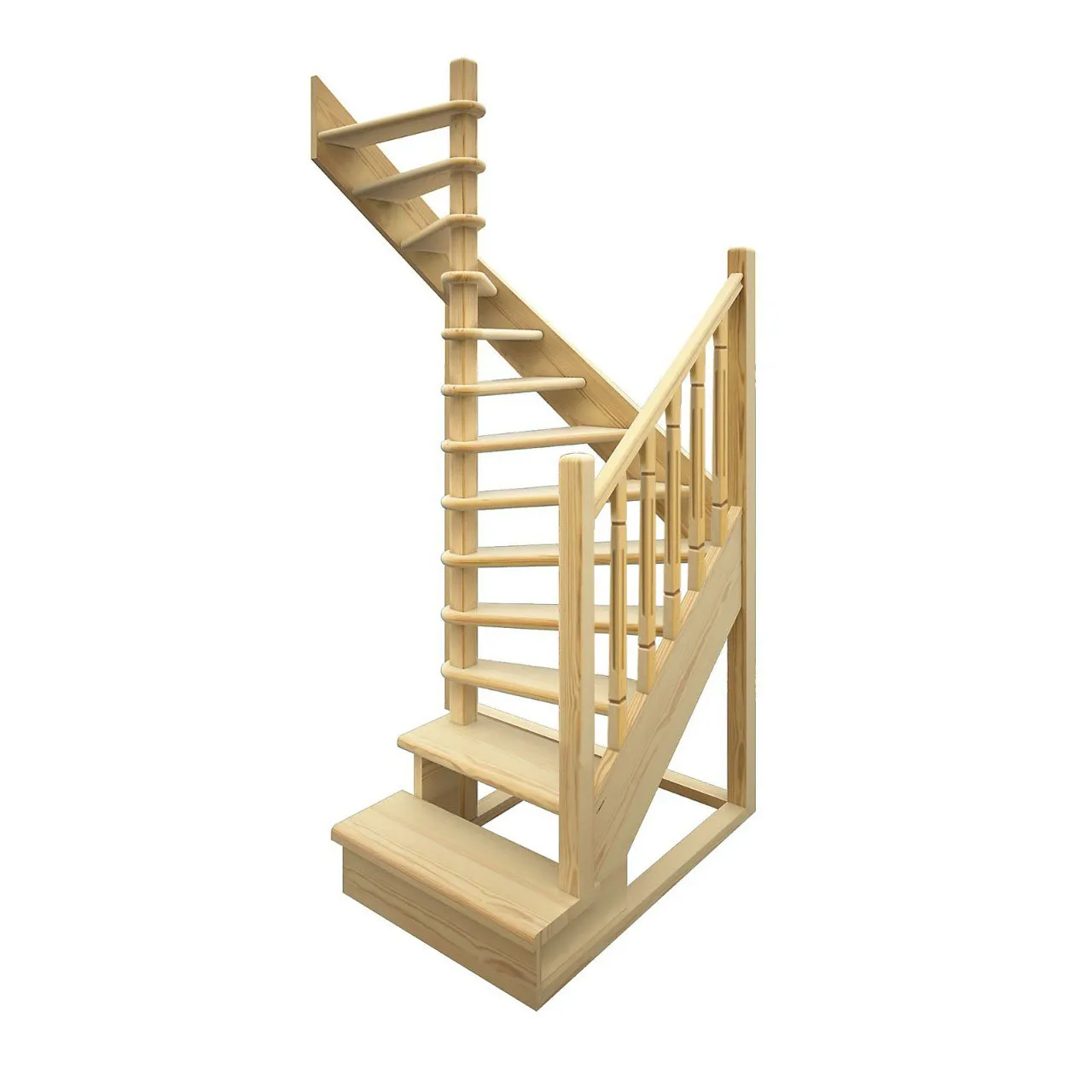 Базовый комплект включает в себя деревянные элементы лестницы и ограждения без какого-либо покрытия. Лестница поставляется в разобранном виде.
