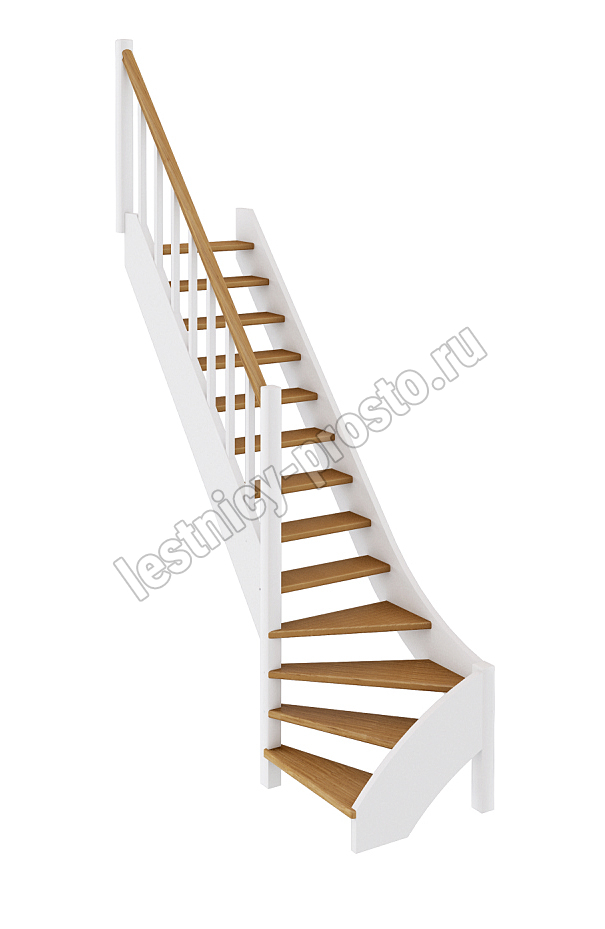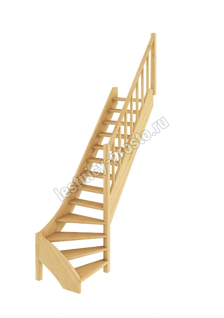 Базовый комплект включает в себя деревянные элементы лестницы и ограждения без какого-либо покрытия. Лестница под покраску изготовлена из сосны с небольшими участками синевы, которая мало влияет на механические свойства материала и практически незаметна при покраске лестницы в тёмные цвета, однако позволяет снизить стоимость готовой лестницы, по эксплуатационным свойствам ничем не отличающейся от более дорогого аналога.