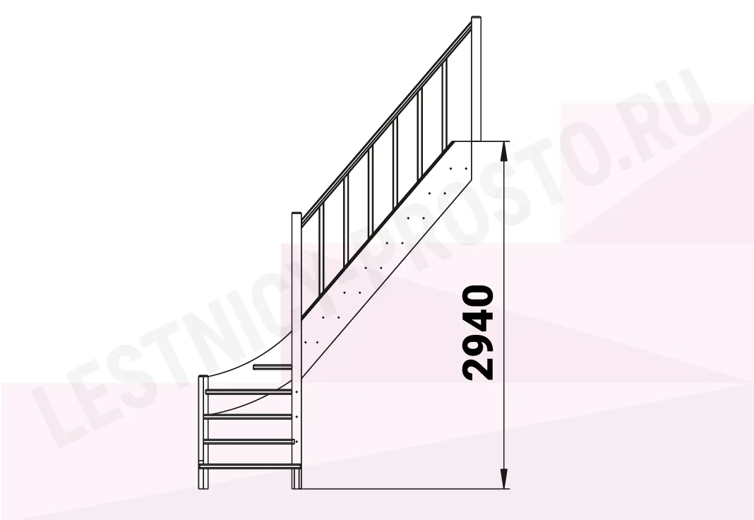 Базовый комплект включает в себя деревянные элементы лестницы и ограждения без какого-либо покрытия.