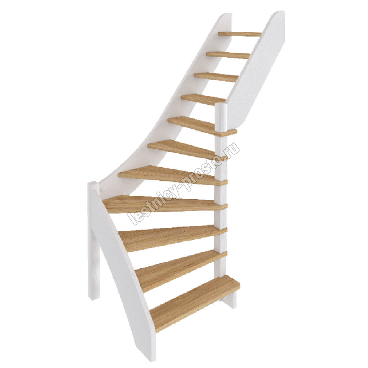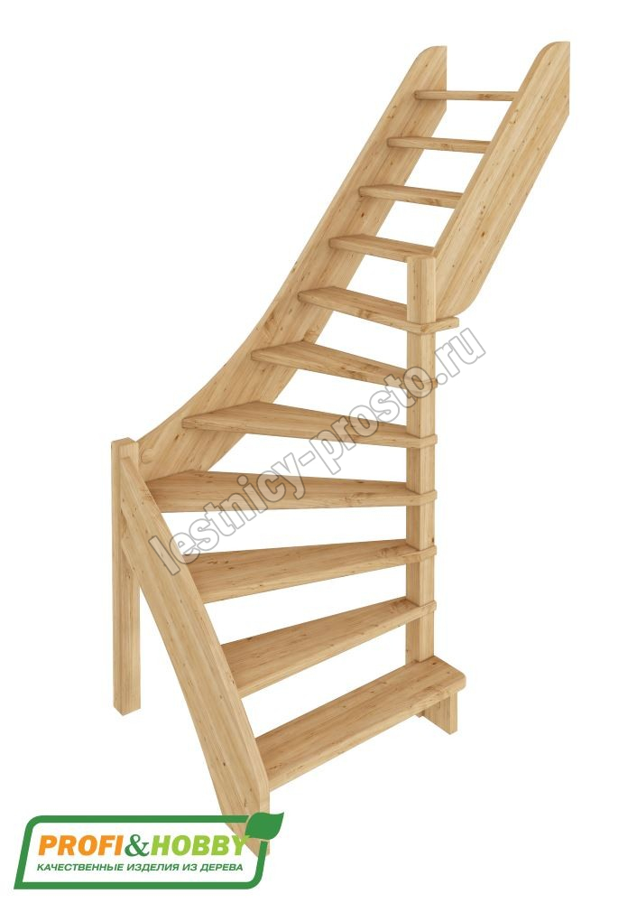 Базовый комплект включает в себя деревянные элементы лестницы без какого-либо покрытия.