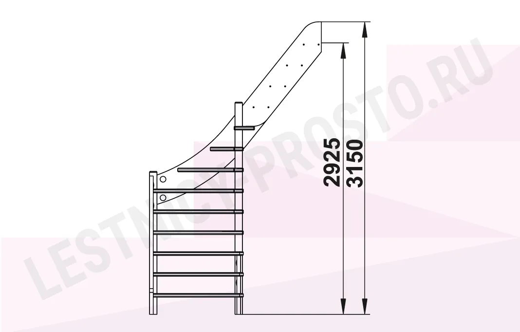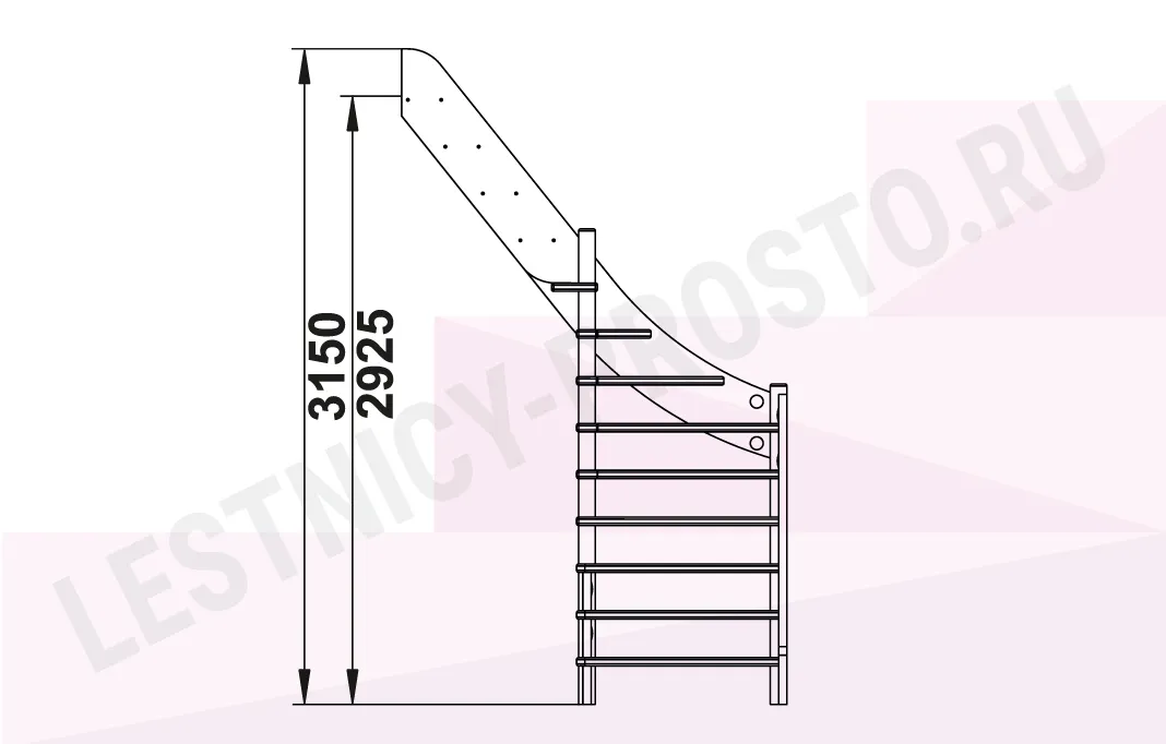Схема лестницы ЛС-92М/3 с поворотом налево