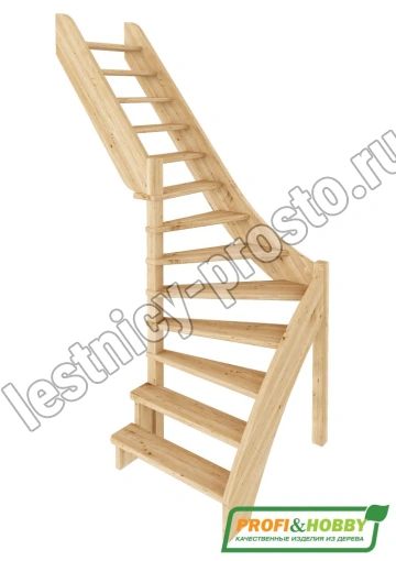 Базовый комплект включает в себя деревянные элементы лестницы без какого-либо покрытия.