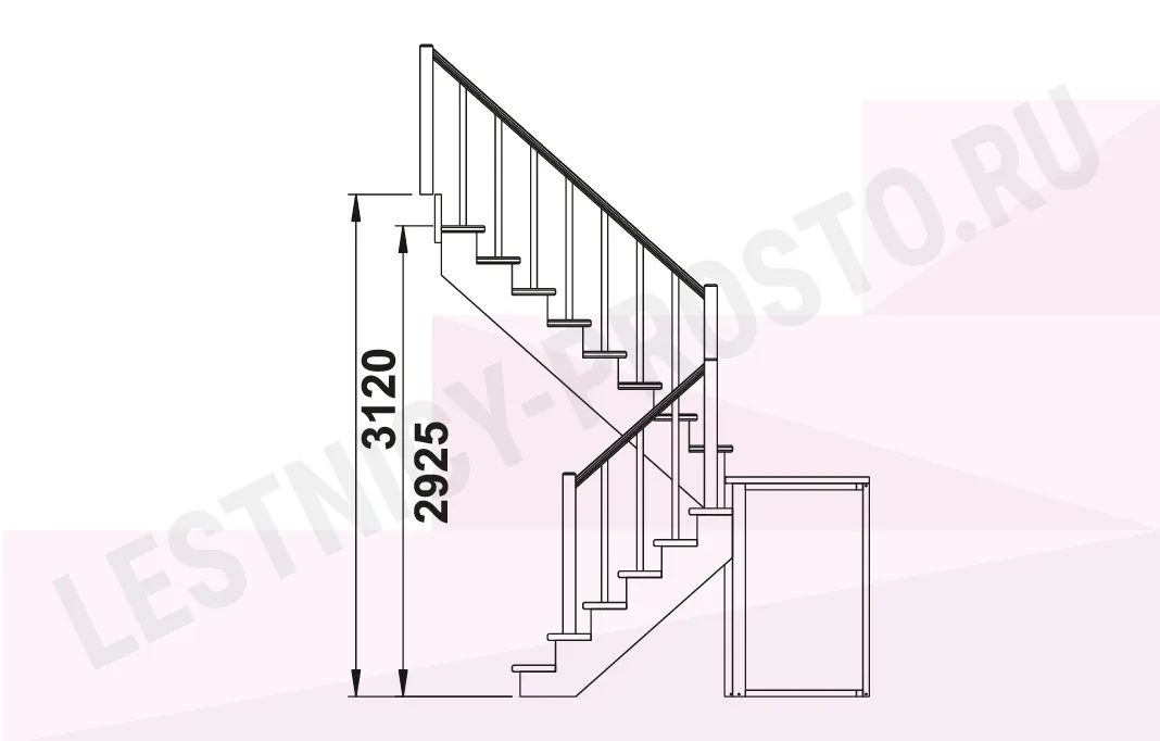 Схема лестницы К-004М/3 с поворотом налево