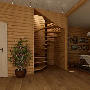 Базовый комплект включает в себя деревянные элементы лестницы и ограждения без какого-либо покрытия. Лестница поставляется в разобранном виде, упакованная в ящик. Монтаж производится силами двух человек, в соответствии с указаниями, приведёнными в паспорте лестницы.