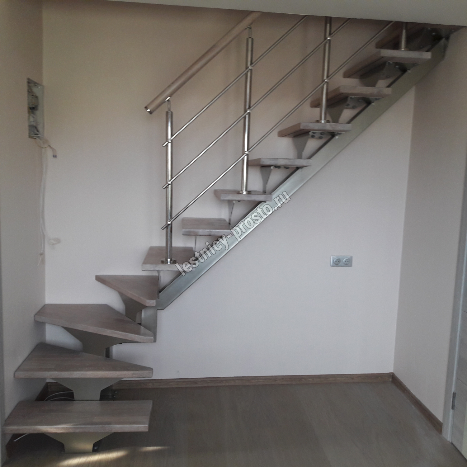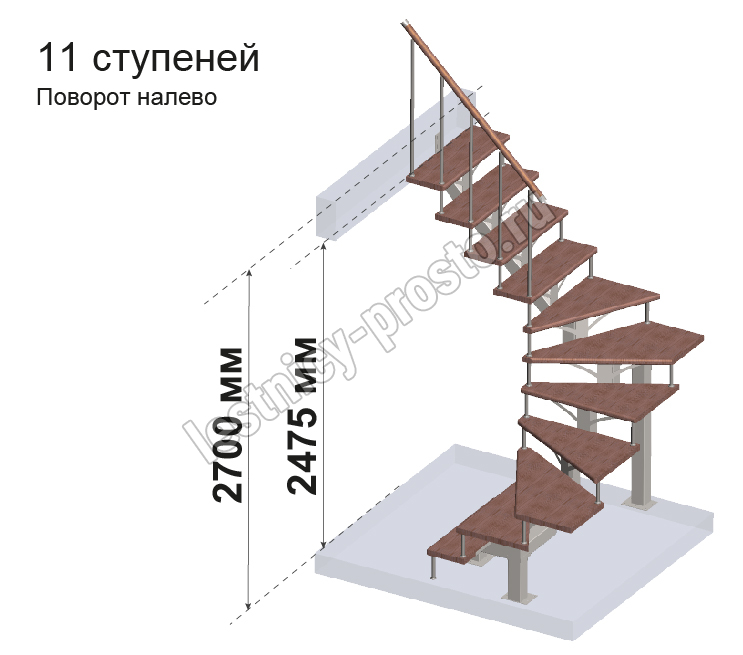 Комплект ограждений для П-образной лестницы PROSTO MONO из 11 ступеней.