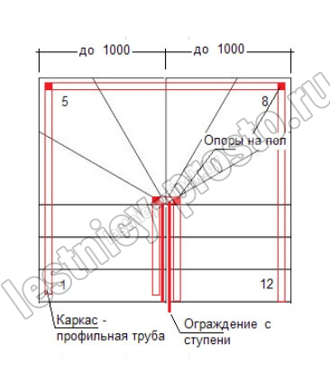 В комплекте на каждую ступень лестницы приходится 1 стойка