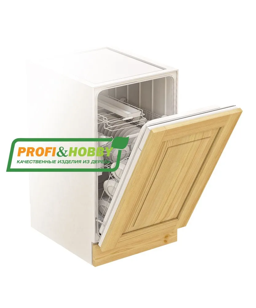 Фасад для посудомоечной машины изготовлен из 100% массива дерева, без шпона и без МДФ/ДСП.