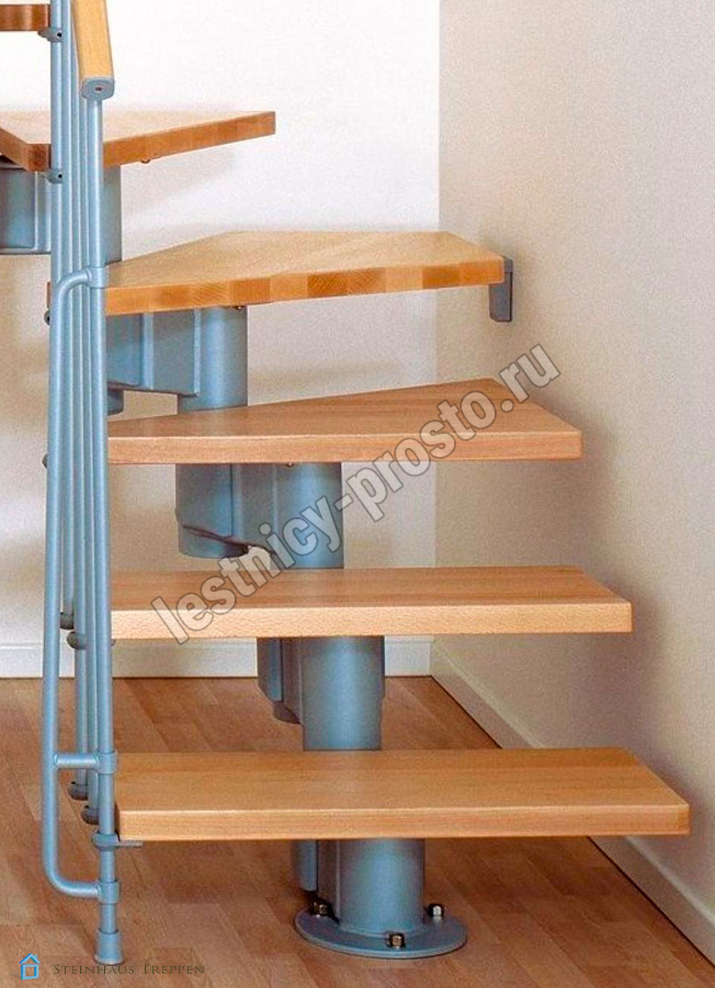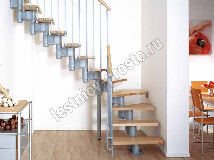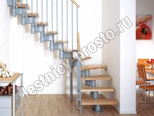 Красивая комфортная лестница с уникальной модульной конструкцией, которая позволяет собрать большое число модификаций, подходящих под ваш проём и другие условия помещения. Возможные варианты сборки лестницы смотрите в блоке "чертежи и схемы". При монтаже модульной лестницы KOMPACT, вы можете варьировать высоту шага и проступь, получив точную необходимую высоту и габариты. Лестница KOMPACT возможна в двух вариантах: с шириной марша 740 мм и 890 мм. Ступени выполнены из массива бука и покрыты качественным износостойким лаком. Базовая комплектация позволяет получить лестницу под высоты этажа в диапазоне 2250 - 3030 мм, кроме того, установив дополнительный комплект увеличения высоты, можно поднять высоту лестницы до 3730 мм. Каркас и стойки ограждения выполнены из пластифицированного металла.
