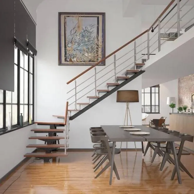 Лестница PROSTO MONO прекрасно подходит для интерьеров с минималистичным дизайном, дизайном в стиле лофт или хайтек. Основой лестницы служит цельносварной центральный косоур, который обеспечивает надёжную прочность конструкции и "парящий" дизайн, лестница с таким каркасом в интерьере смотрится легко и воздушно.