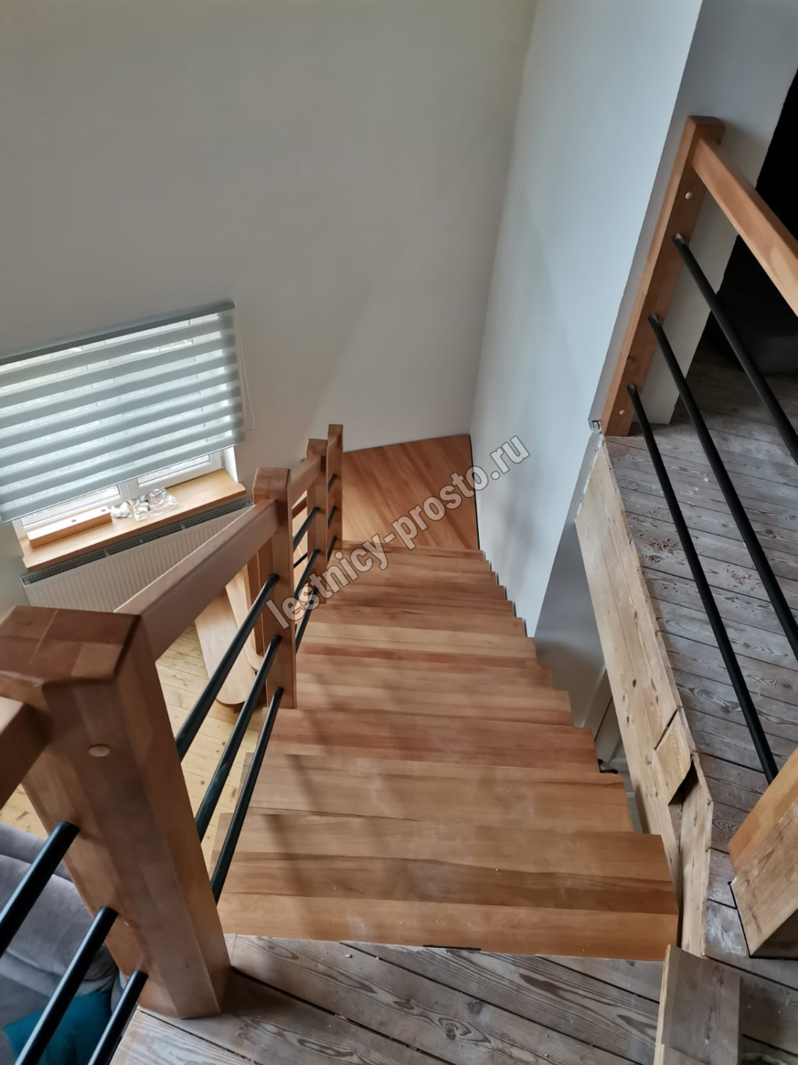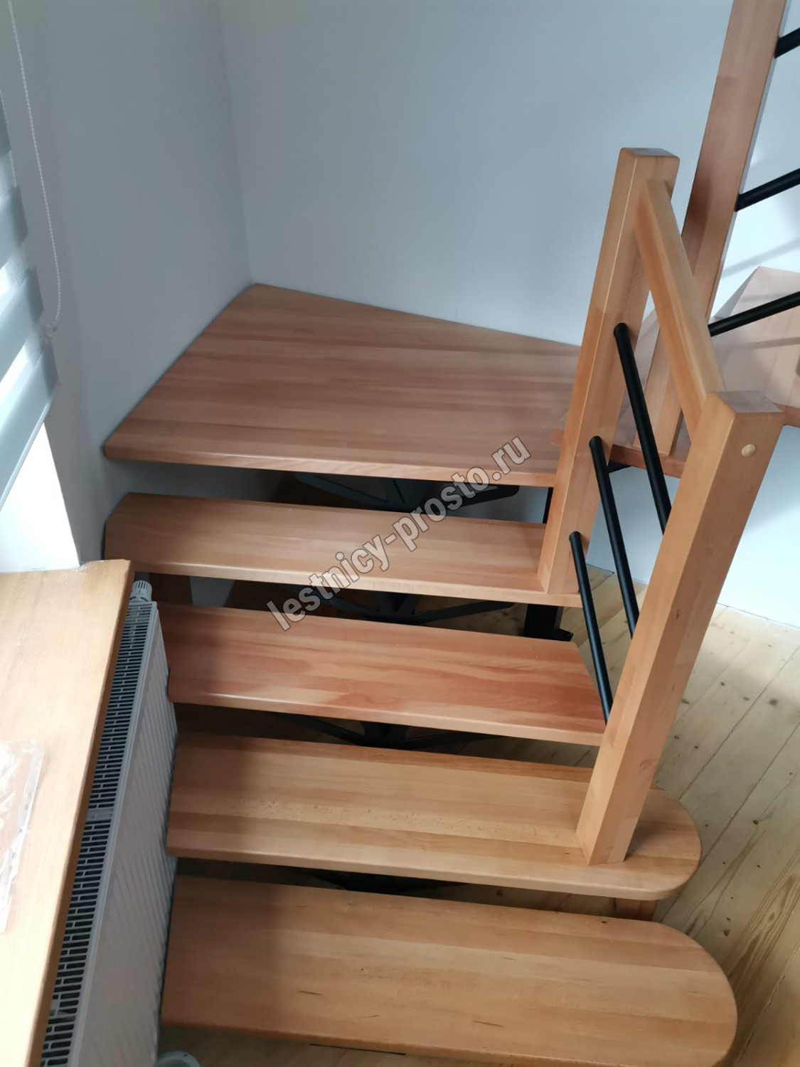 Поворот на 90° реализован посредством площадки, высота поворота определяется параметрами вашего помещения и размерами проёма.