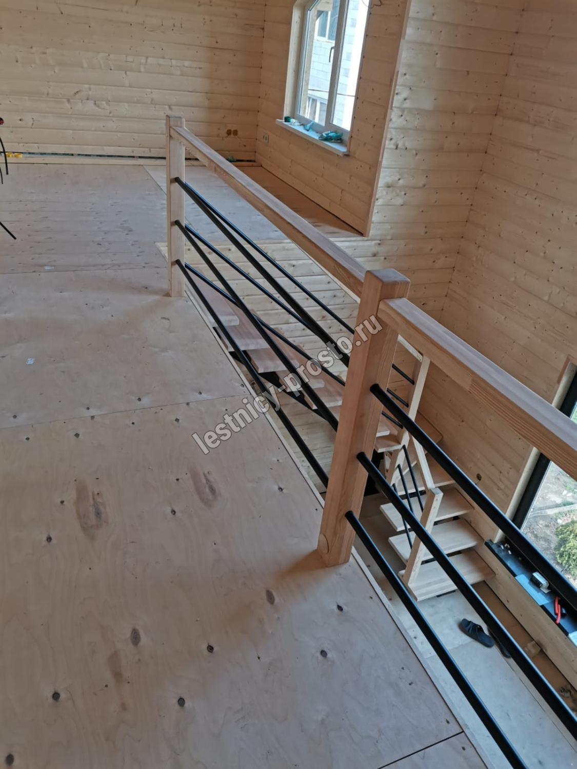 Лестница PROSTO MONO STEP TRINITY г-образная забежная, ступени берёза с ограждением