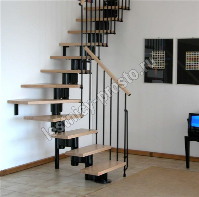 При монтаже этой лестницы, возможно регулировать высоту и глубину шага, таким образом можно получить лестницу под высоты этажа в диапазоне 2250 - 3030 мм, кроме того, установив дополнительный комплект увеличения высоты, можно поднять высоту лестницы до 3730 мм. Ширина проступи регулируется при монтаже в пределах 180 - 220 мм. Каркас и стойки ограждения выполнены из пластифицированного металла. Уникальный модульный каркас позволяет собрать лестницу необходимой формы.