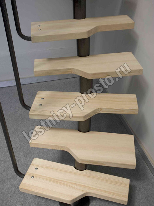 При монтаже этой лестницы, возможно регулировать высоту и глубину шага, таким образом можно получить лестницу под высоты этажа в диапазоне 2220 - 3000 мм. Ступени лестницы выполнены из сращенной ольхи и покрыты бесцветным защитным лаком.