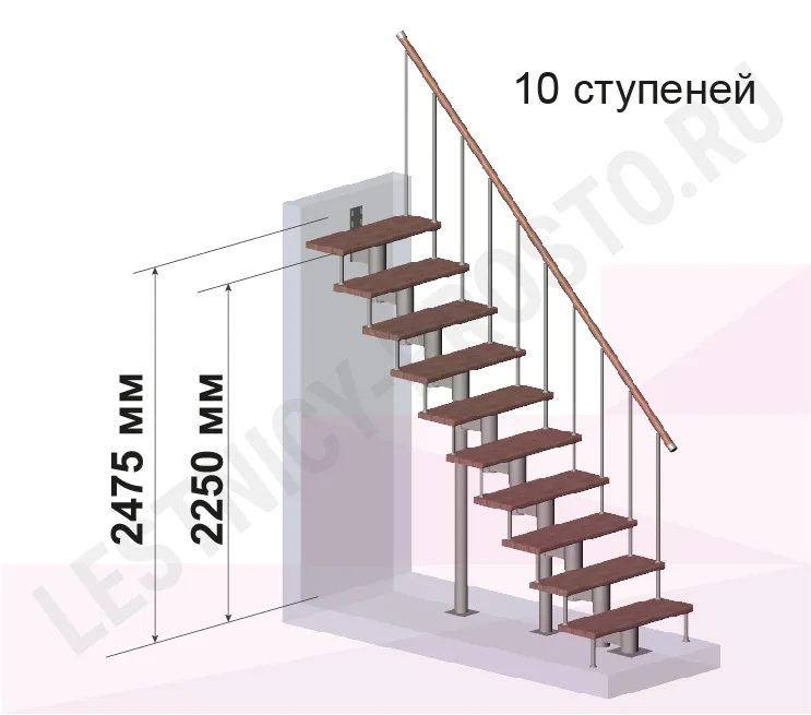 Высота лестницы 2250 - 2475 (10 ступеней) мм