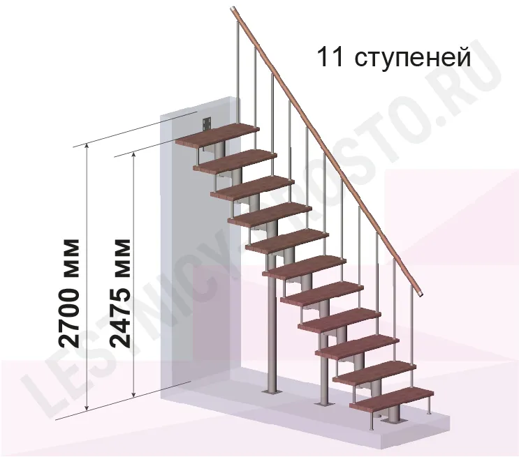 Модульная лестница PROSTO Module прямая/ h247.5 см