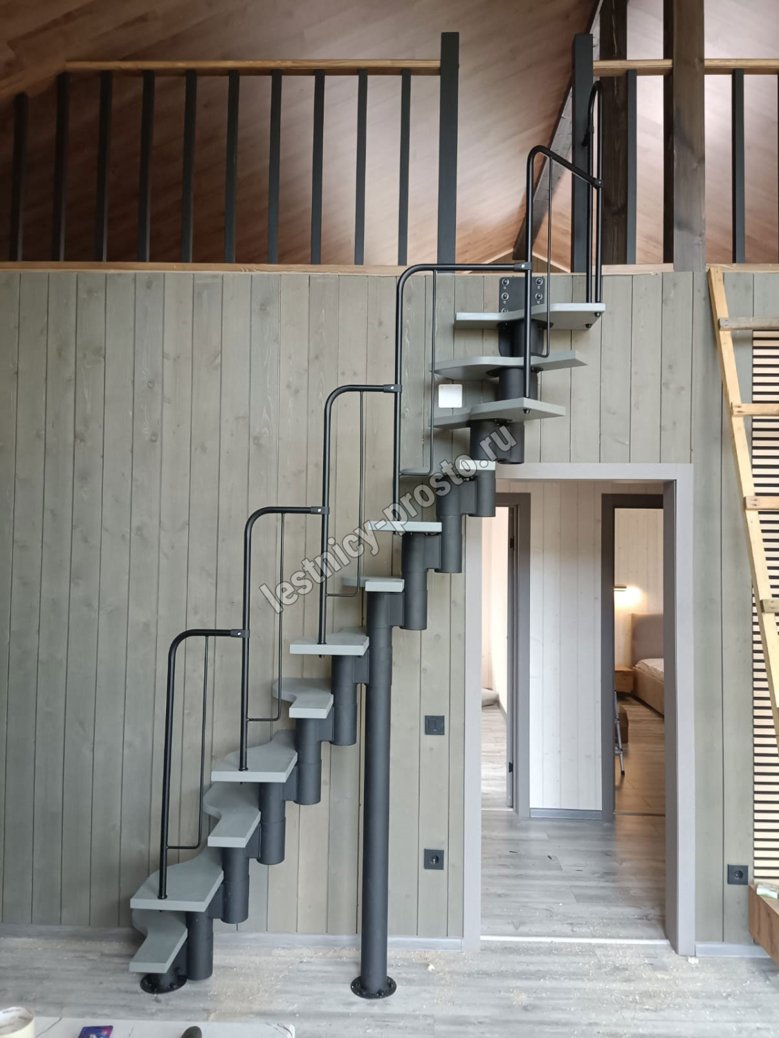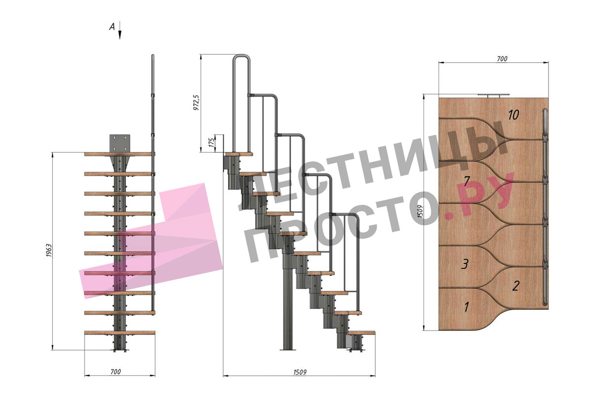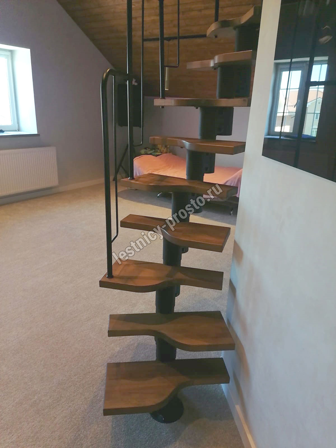 Лестница Prosto Urban Black гусиный шаг 700 мм, h180-264 см (10 ступеней), ясень