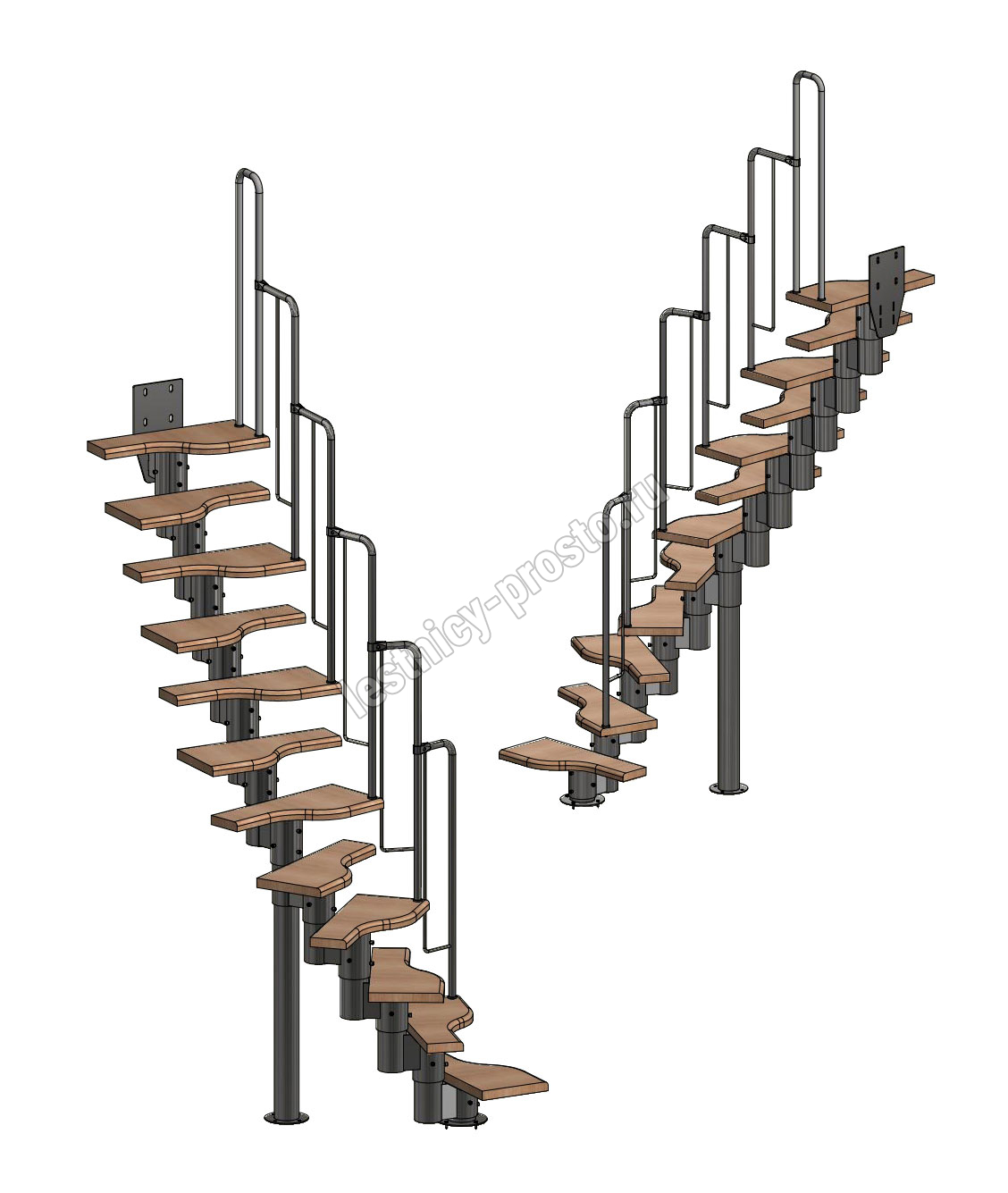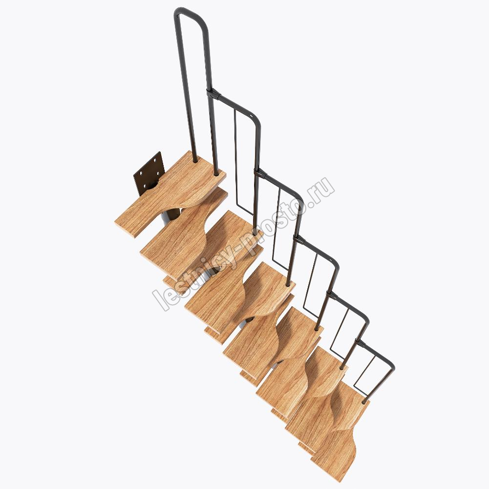 Лестница Prosto Urban Black гусиный шаг 600 мм, h216-312 см (12 ступеней), бук