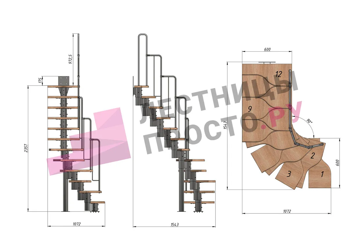 соответствует картинке, но вы не ограничены в его выборе. Лестницу можно приобрести и без ограждения, и с любым другим. Устанавливать на такую лестницу можно почти всё, начиная от классических деревянных балясин и заканчивая эксклюзивными коваными изделиями.