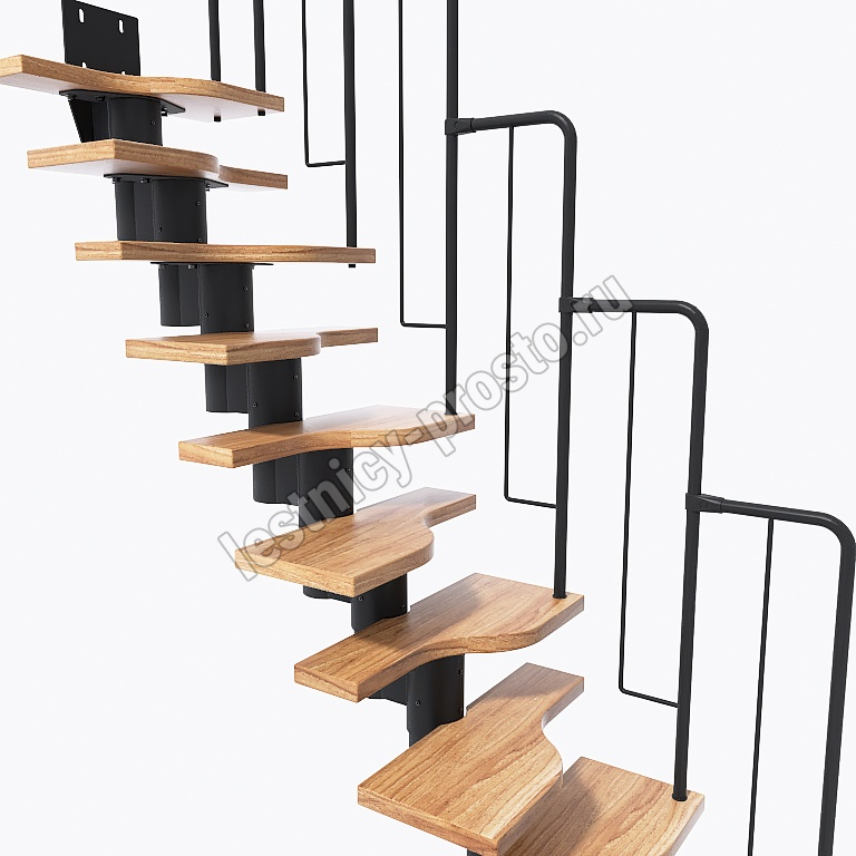 Лестница Prosto Urban Black гусиный шаг 600 мм, h234-336 см (13 ступеней), бук