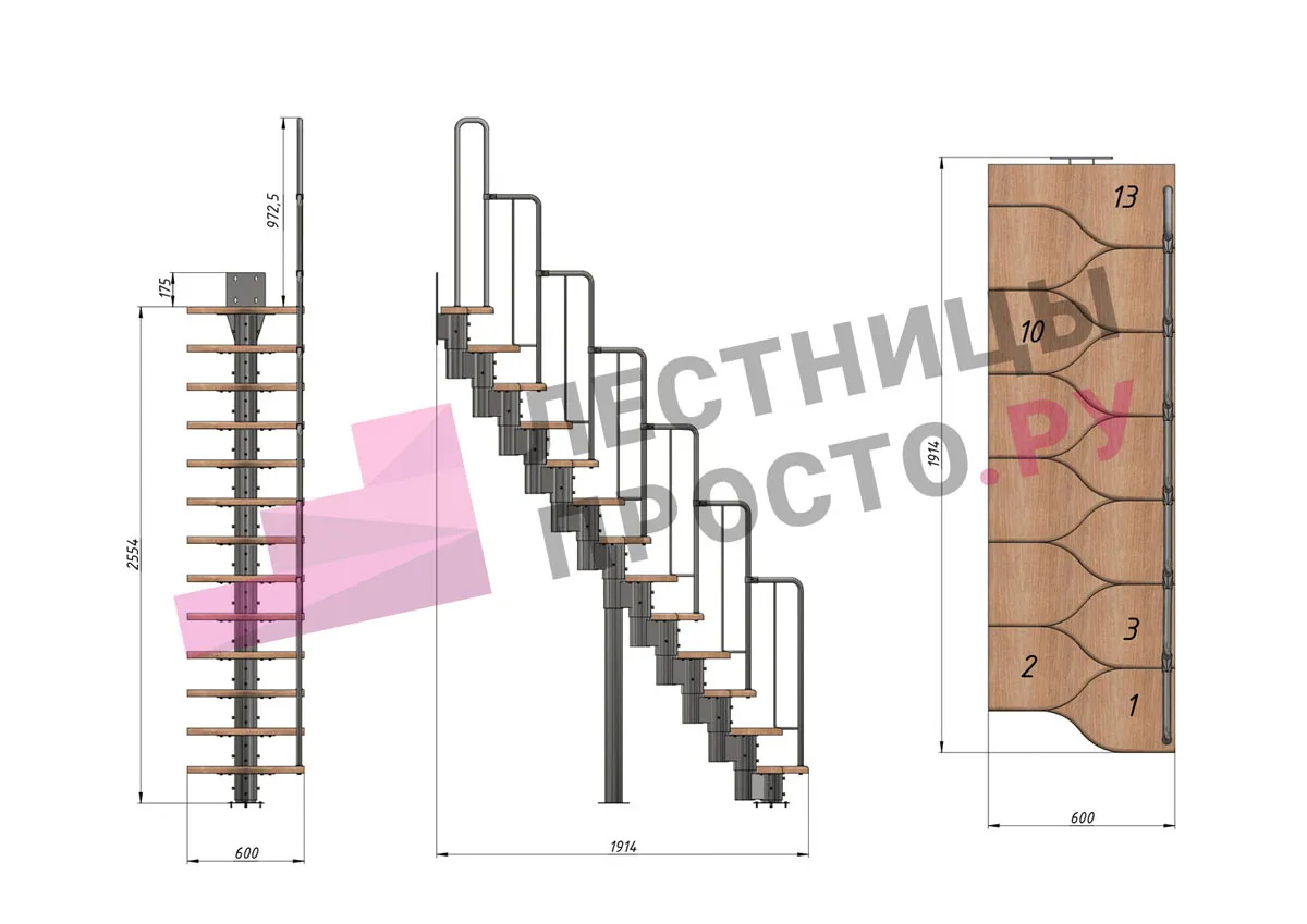 У лестницы  16 вариантов размера