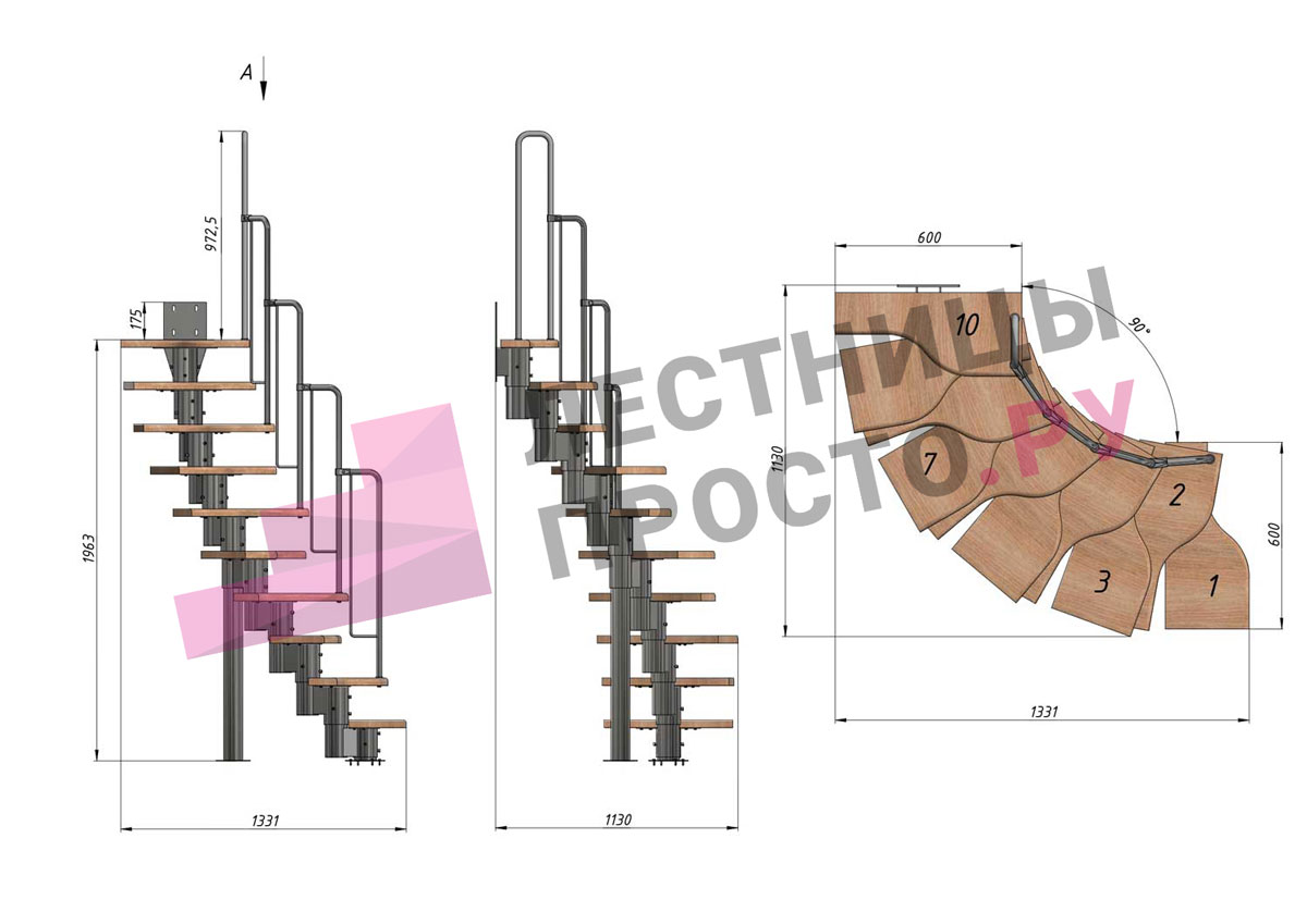соответствует картинке, но вы не ограничены в его выборе. Лестницу можно приобрести и без ограждения, и с любым другим. Устанавливать на такую лестницу можно почти всё, начиная от классических деревянных балясин и заканчивая эксклюзивными коваными изделиями.