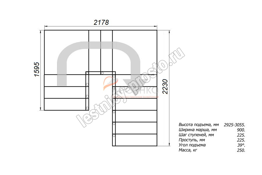 Модульная лестница Комфорт 225 2925-3055, Черный, Сосна, Крашеная, Без Ступений
