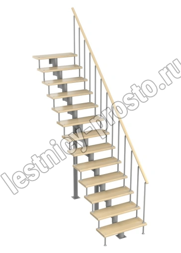Модульная лестница Стандарт 3150-3290, Серый, Сосна, Крашеная, Без Ступений