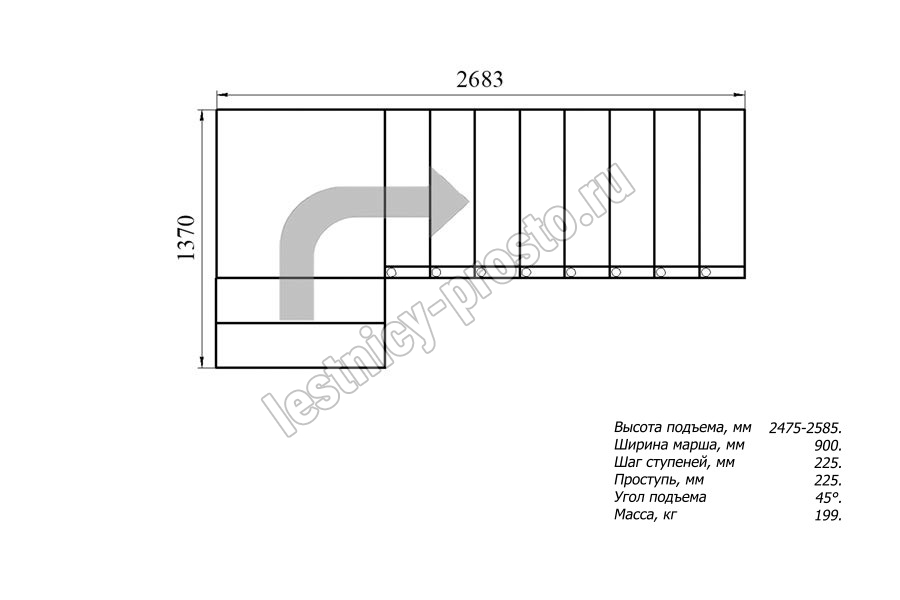 Модульная лестница Статус 225 2475-2585, Белый, Сосна, Нержавеющая сталь