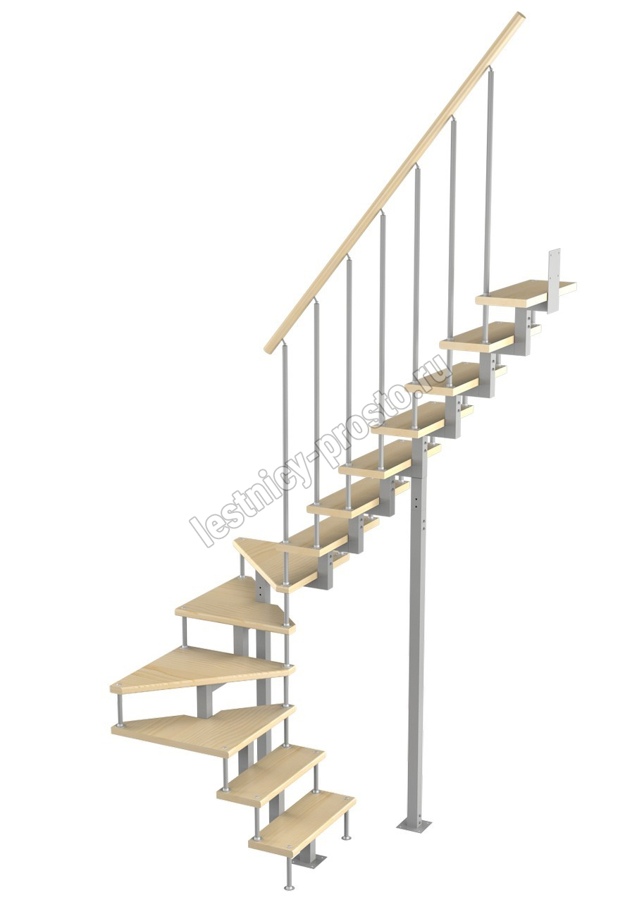 Модульная малогабаритная лестница Эксклюзив 2925-3150, Белый, Сосна, Нержавеющая сталь