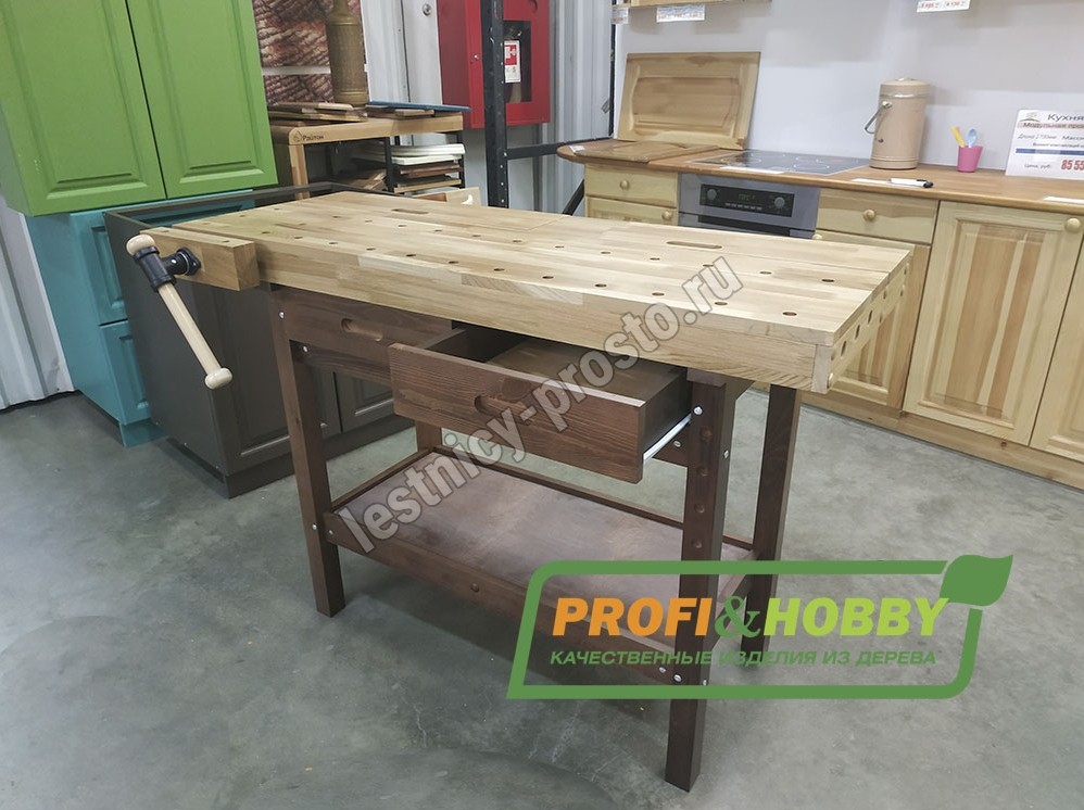• Столешница и тиски выполнены из массива дуба