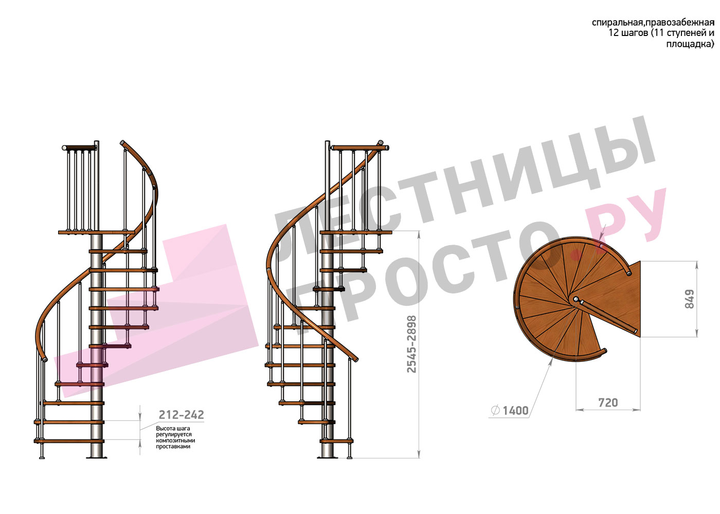 Винтовая лестница Prosto Spiral White/Высота 2545 - 2898 мм