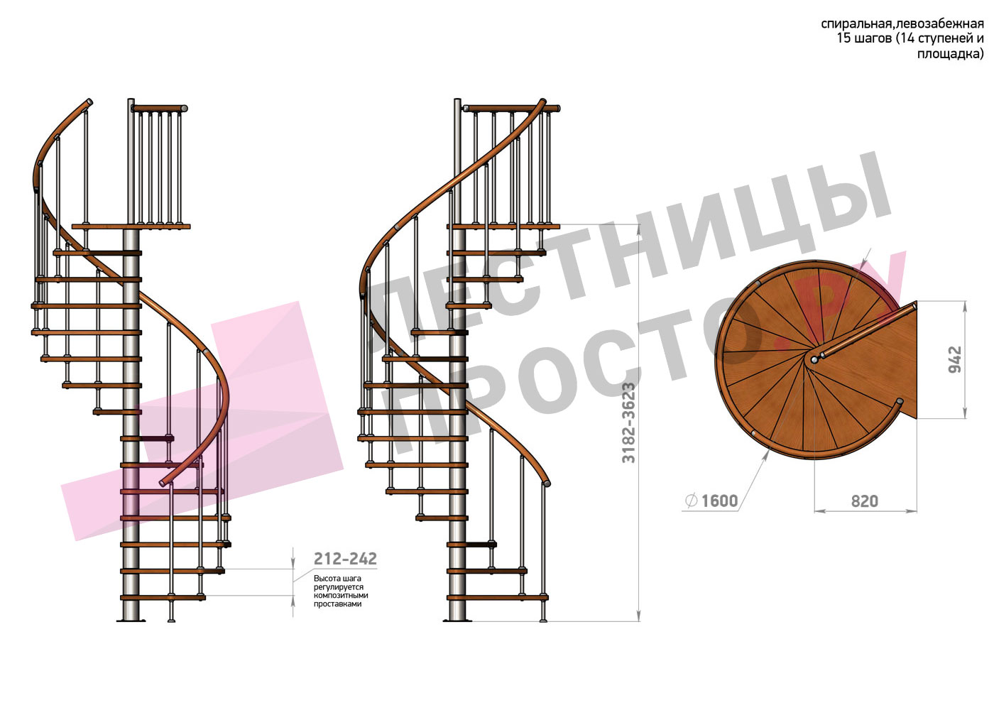 Винтовая лестница Prosto Spiral White/Высота 3182 - 3623 мм
