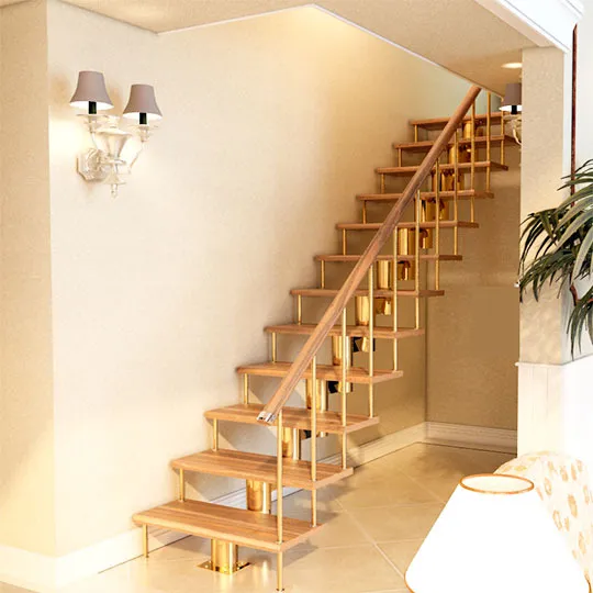 Ступени лестницы изготовлены из бука по технологии MULTIPLEX и покрыты износостойким защитным лаком. Лестница монтируется как по часовой стрелке, так и против. Возможен монтаж в круглый или квадратный проём. Ограждение: стальные трубки, Ø25 мм RAL 9006. Поручень: гибкий цельный ПВХ-поручень Ø40 мм серого цвета. Конструкция и балюстрада окрашены порошковым способом в серый цвет (RAL 9006).