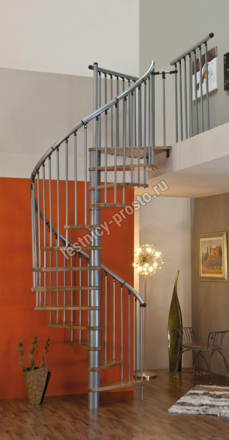 Винтовая лестница SPIRAL EFFECT d120 см, серебро, лакированный бук