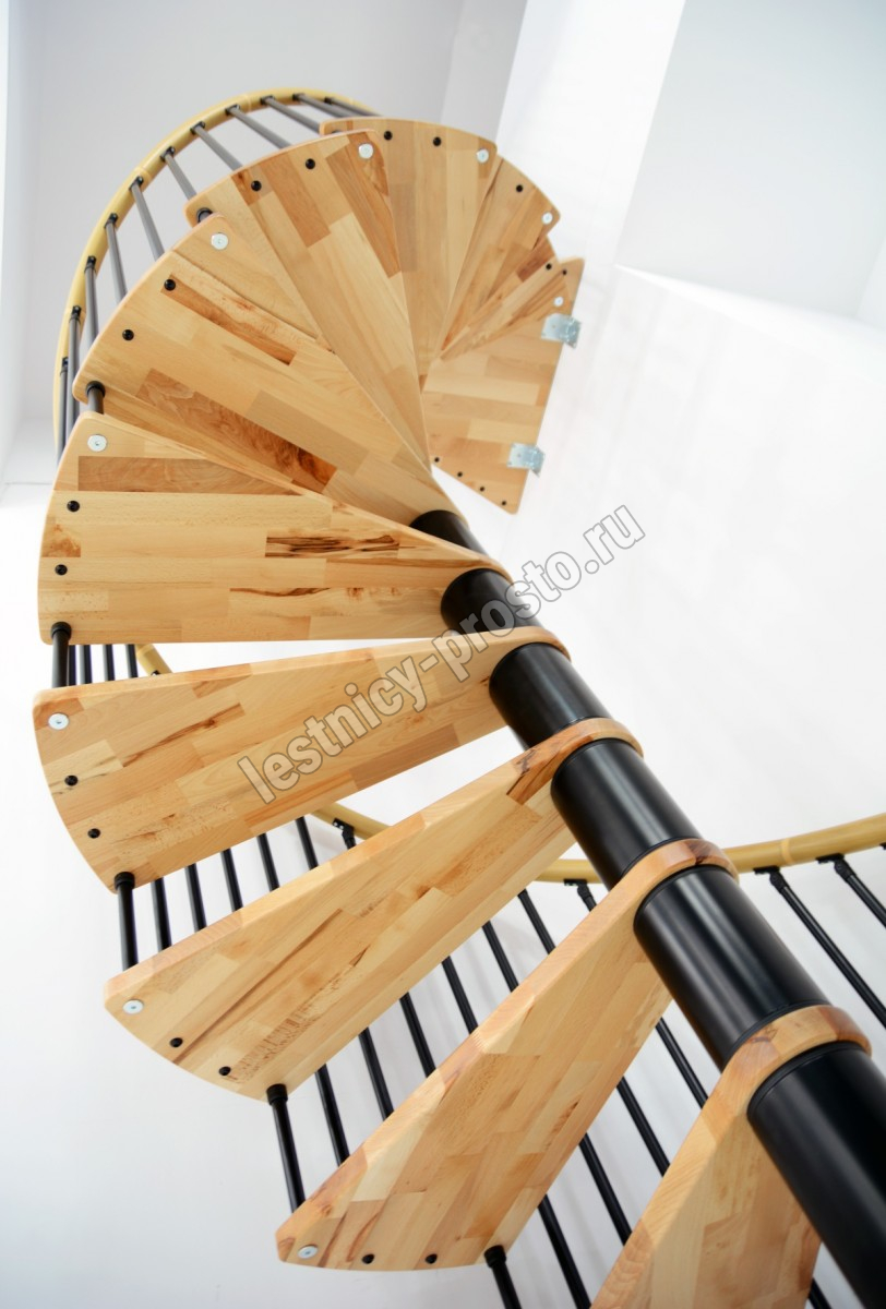 Перила изготовлены из массива бука и покрыты износостойким лаком.